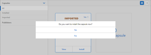 To install a capsule in a different organization, import the published capsule file, review its content, and then install it.