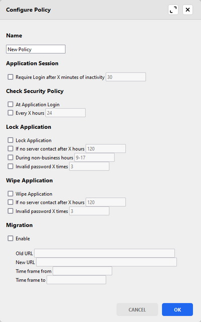 - If there is a policy set for the user or for the group of users, the application will verify it directly before the login. This makes sure the security policies apply on every launch of the application.
