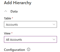 Each configuration starts by selecting a Table and View, which form Level 0 (dataset).
