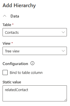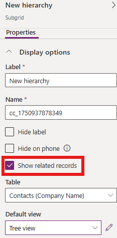 | Note | In this example, we selected Contact, which means all related contacts to the current record (form where we placed the Hierarchy control) will be displayed. |
