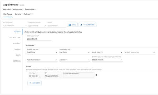 - Add the Resco PCF Configuration table as a new page.