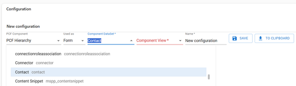 Resco PCF Configuration works as any other table. To create a new component configuration: