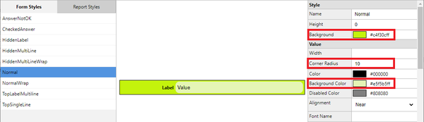 Using styles, Woodford administrators can set various properties of editable fields, such as those on forms or when answering questionnaires. With this release, our style editor gained additional options to better distinguish between the label and the value, so that app users know where to tap to enter a value. You can now also configure corner radius (just like CSS rounded corners).