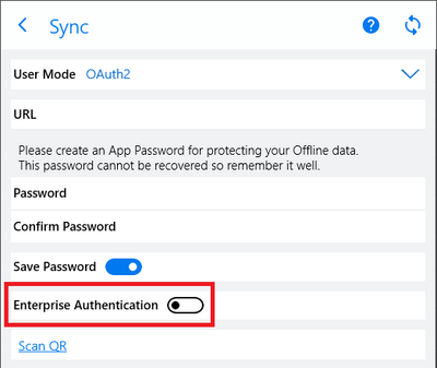 We are improving the authentication options for Windows Desktop and Windows Store (UWP) apps. The new Enterprise Authentication switch in the Sync window is dedicated to enterprise customers delivering managed applications over MDM. It's required when using additional authentication methods like conditional access, user certificates, or reverse proxy.