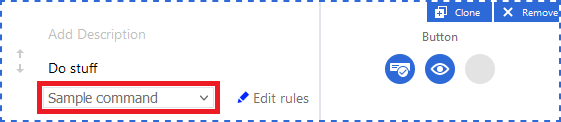 If you have custom commands defined in your questionnaire template, these commands are also available as options for buttons. The command's effects are defined using the On Execute rule.