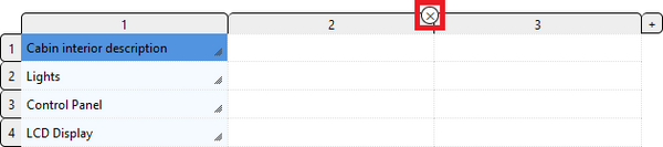 You can also delete unnecessary rows or columns directly from the editor. The (x) button for deletion appears when you point at the column or row header. Click the button to delete.