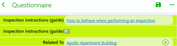 You can now add guides as a static component to questionnaires. The guide can be displayed either as a link or as an icon. Inspectors can consult guides directly from the questionnaire and return to the inspection.