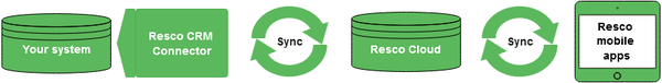 Resco CRM connector is a group of web API services that you can use to connect your third-party backend to Resco Cloud to exchange data between the systems. These are the components involved in Resco CRM Connector.