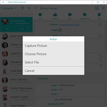 Now, you need to save these changes, publish the mobile project and synchronize the Mobile CRM application. Then open any Account record in the app, create an associated Note with Subject “ListImage” and attach/capture a picture. This picture is used in the list for this record.