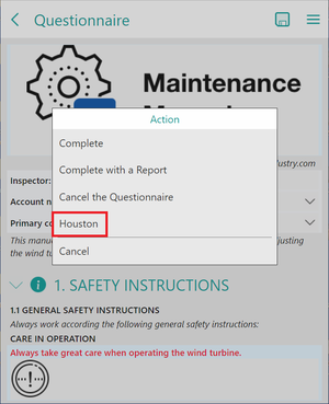 - Start the app and open any questionnaire or one of the forms where Houston is enabled.